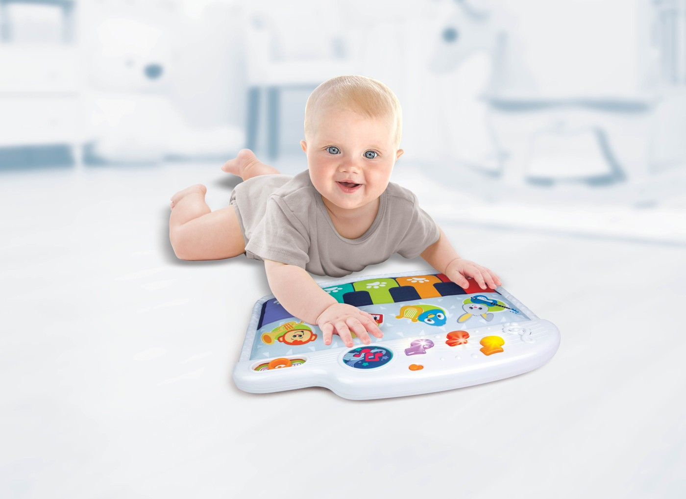 Pianul cu sunete distractive si lumini intermitente este o jucarie inovativa conceputa pentru a tine copilasul ocupat si a-l stimula in dezvoltarea sa timpurie. Potrivit pentru copii cu varsta incepand de la 3 luni in sus, acest pian ofera o gama variata de functionalitati interactive, menite sa incurajeze explorarea si interactiunea activa. Jucaria se poate atasa cu usurinta la patul sau leaganul bebelusului, permitand accesul comod si sigur pentru micut. Pianul este echipat cu butoane si taste care reactioneaza la atingere, fie prin lovire cu piciorusul, fie prin apasare directa. Aceste actiuni activeaza note muzicale variate, melodii pline de veselie si sunete realiste de instrumente muzicale. Lumini intermitente acompaniaza sunetele produse de pian, adaugand o dimensiune vizuala jocului si atragand atentia copilului in mod captivant. De asemenea, pianul serveste si ca un instrument educativ util in dezvoltarea abilitatilor motorii fine ale bebelusului. Prin manipularea butoanelor si a tastelor, micutul isi dezvolta coordonarea mana-ochi si invata despre cauzalitate, intelegand ca actiunile sale au efecte in mediul inconjurator.