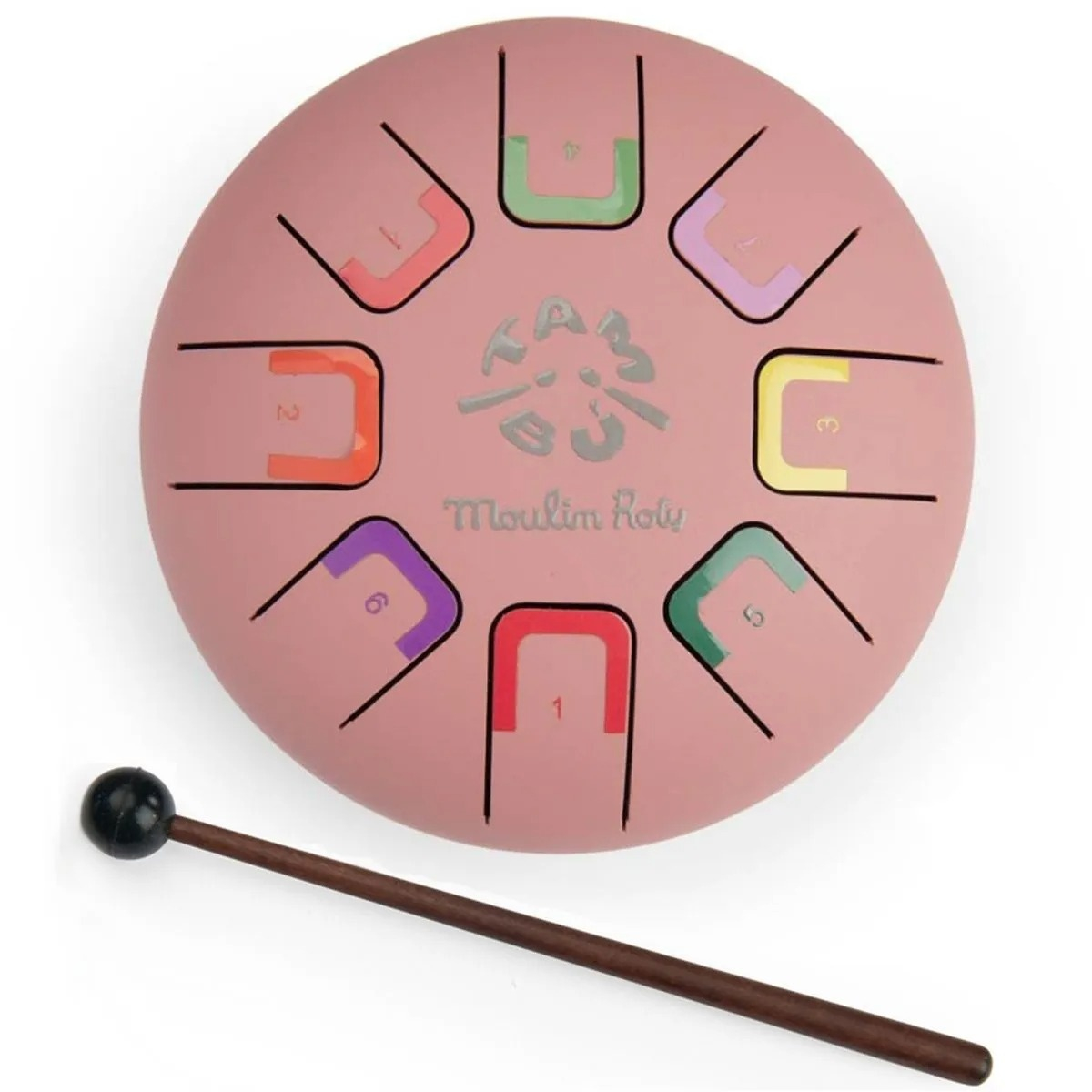 Un instrument excepțional pentru a introduce copiii în lumea fascinantă instrumentelor de percuție. 8 note codificate prin culori și numere pentru a fi percutate cu palmele, vârful degetelor sau cu bețe de tobe. Concepută special pentru copii, această tobă metalică are un design prietenos și culori atrăgătoare, fiind un instrument ideal pentru inițierea în muzică și dezvoltarea ritmului.