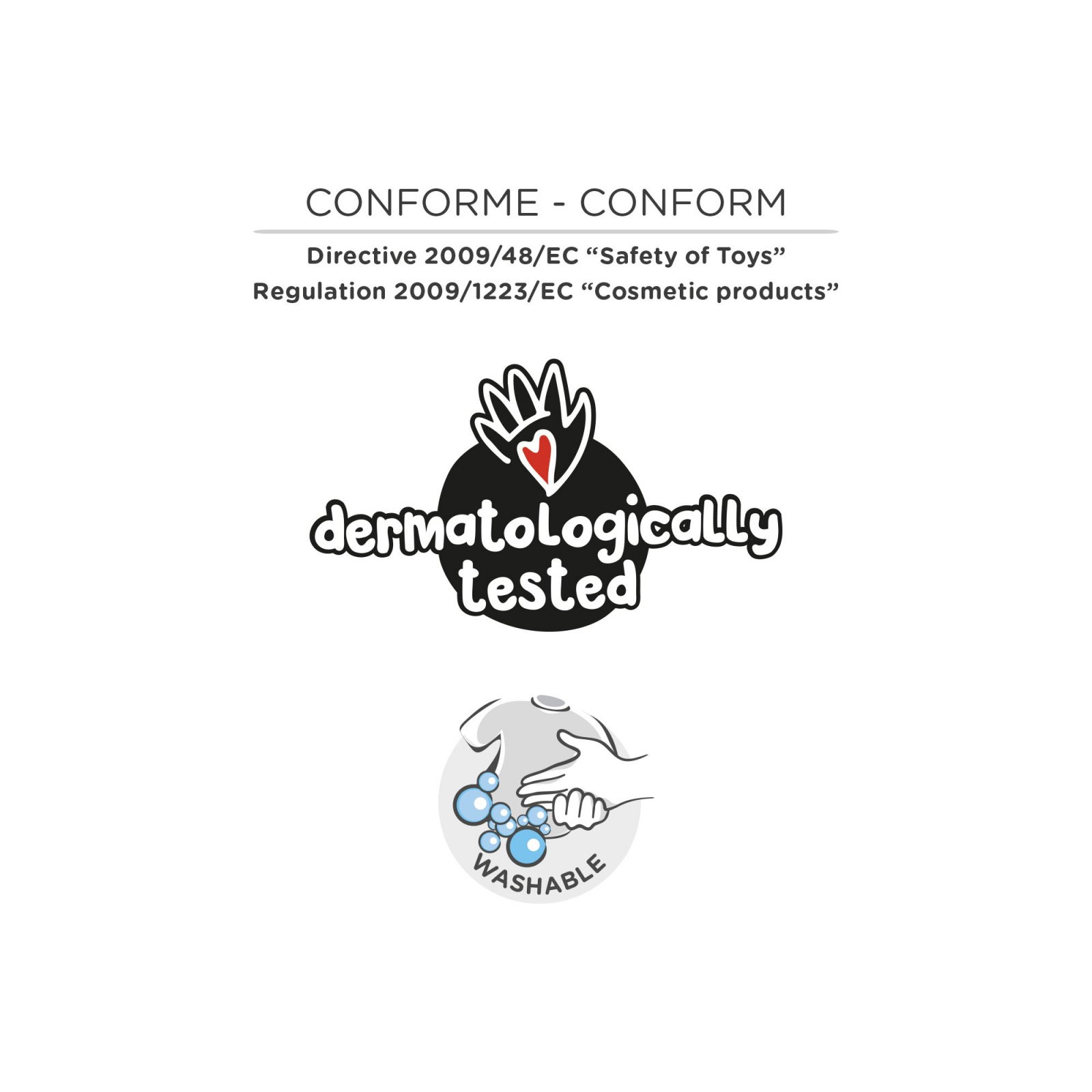 * Set-ul contine 3 culori stralucitoare si lavabile, testate dermatologic (rosu, albastru, negru).