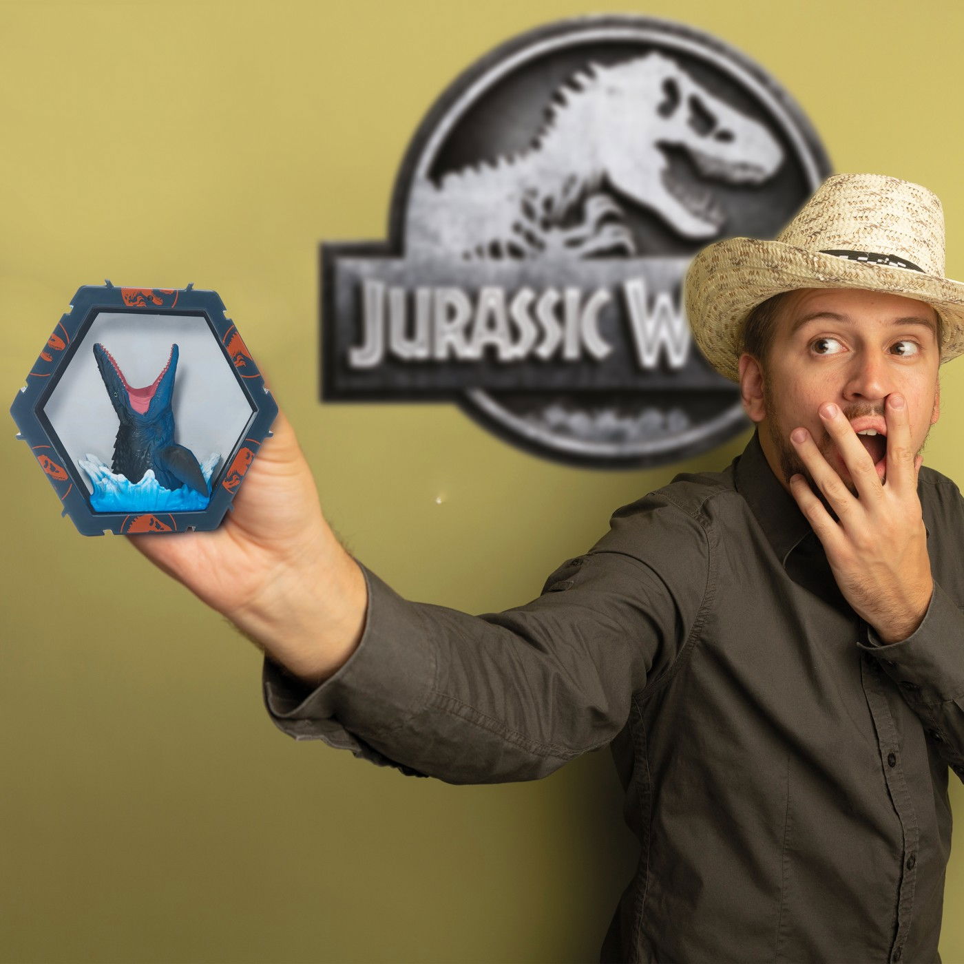 Fiecare personaj este situat in propriul POD in forma de hexagon cu lumini UV si senzor IR incorporat. Pur si simplu miscati mana peste senzor pentru a lumina WOW-ul! POD-ul! Misca-ti mana in fata POD-ului pentru a-l lumina si a dezvalui pictograme ascunse in spatele WOW!Pod-ului! Lumina se stinge automat dupa 30 de secunde. Conectati-le in cateva secunde! Colectia ta poate lua diferite forme si avea in fiecare zi, alt look! Limita e doar de imaginatia ta! Puteti chiar sa va scrieti numele sau initialele pentru a crea un afisaj care este fara indoiala si unic al dvs.! Colectionati si conectati personajele favorite printr-o colectie mai vasta de eroi WOW! PODS! Sunt disponibile personaje Marvel, DC, Disney, Disney Frozen, Sonic, Jurassic World, Harry Potter, Minionii si altele. Acest pachet contine personajul Mosasaurus.