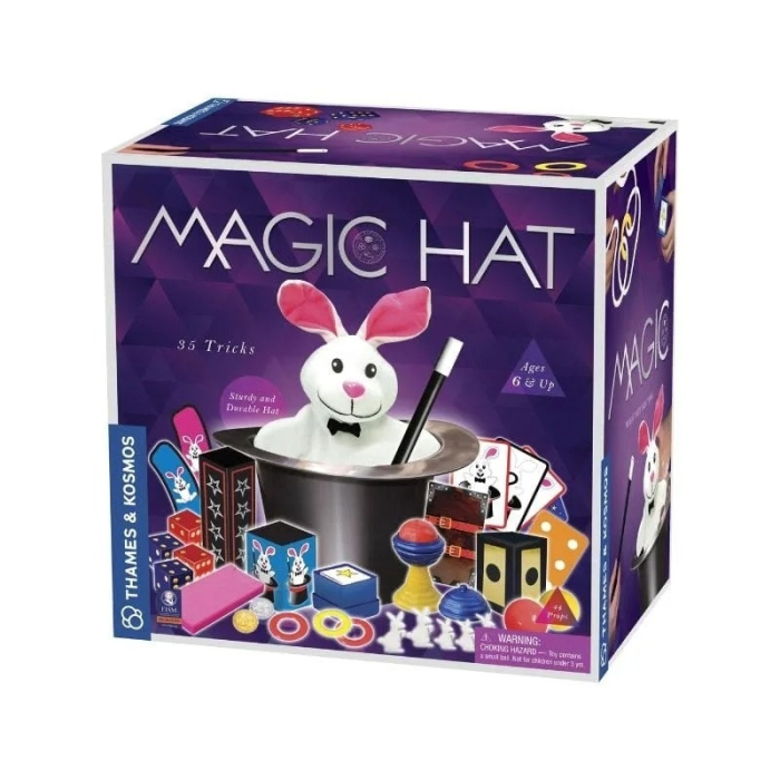Joc de magie Jobenul magic Intră în lumea magiei și a vrăjitoriei! Cu jobenul magic, păpușa iepure și cele 40 de piese de recuzită magice, copiii cu vârsta de peste șase ani pot învăța și realiza 35 de trucuri magice. Cu ajutorul manualului vor învăța în trei pași simpli majoritatea trucurilor. Se explică mai întâi clar de ce recuzită magică este nevoie, apoi cum se pregătește trucul și, în final, cum se realizează. Cu puțină practică, devine ușor să pui în scenă un spectacol de magie plin de trucuri amuzante și reușite care vor uimi și încânta publicul. Vor putea scoate un iepure dintr-un joben aparent gol. Vor face o minge să dispară dintr-un pahar magic, să reapară din nou și să-și schimbe culoarea. Vor face cărțile să crească și să se micșoreze, o monedă să dispară și să reapară. Folosind vederea cu raze X vor vizualiza în mod magic simboluri printr-o suprafață solidă, opacă. Vor face bagheta magică să plutească, să se îndoaie și să crească. Vor schimbă în mod magic culoarea unui inel, duplica inelul și-l vor face să treacă prin baghetă. Micii iepurași din spumă vor apare, dispare, și se vor înmulți ca prin farmec. Vor uimi publicul cu trucuri cu frânghii în care nodurile se dezleagă singure și cu trucuri cu zaruri în care zarurile își schimbă locul și culoarea în interiorul unui tunel magic. Și multe altele. Pentru un magician de la 6 ani în sus și mulți spectatori. Conține 40 de piese, 35 trucuri, manual cu instrucțiuni. Vârsta recomandată: +6 ani.