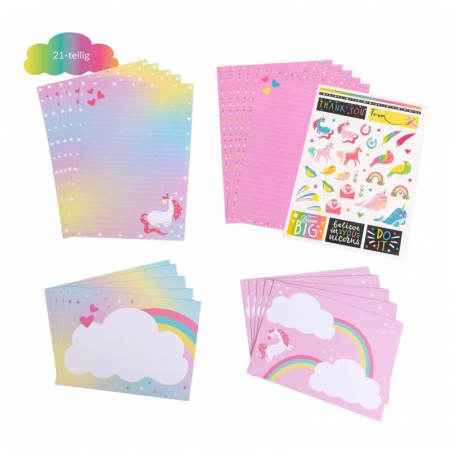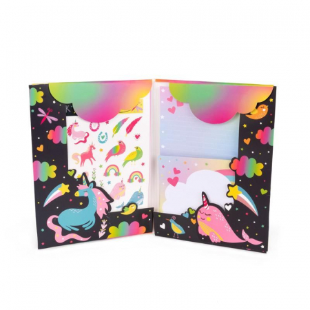 Cufunda-te in lumea magica a unicornilor si lasa-ti imaginatia sa zboare! Acest set de papetarie va ajuta sa creati scrisori creative si personalizate si sa surprindeti destinatarul. O idee minunata de cadou pentru toti fanii unicornilor!