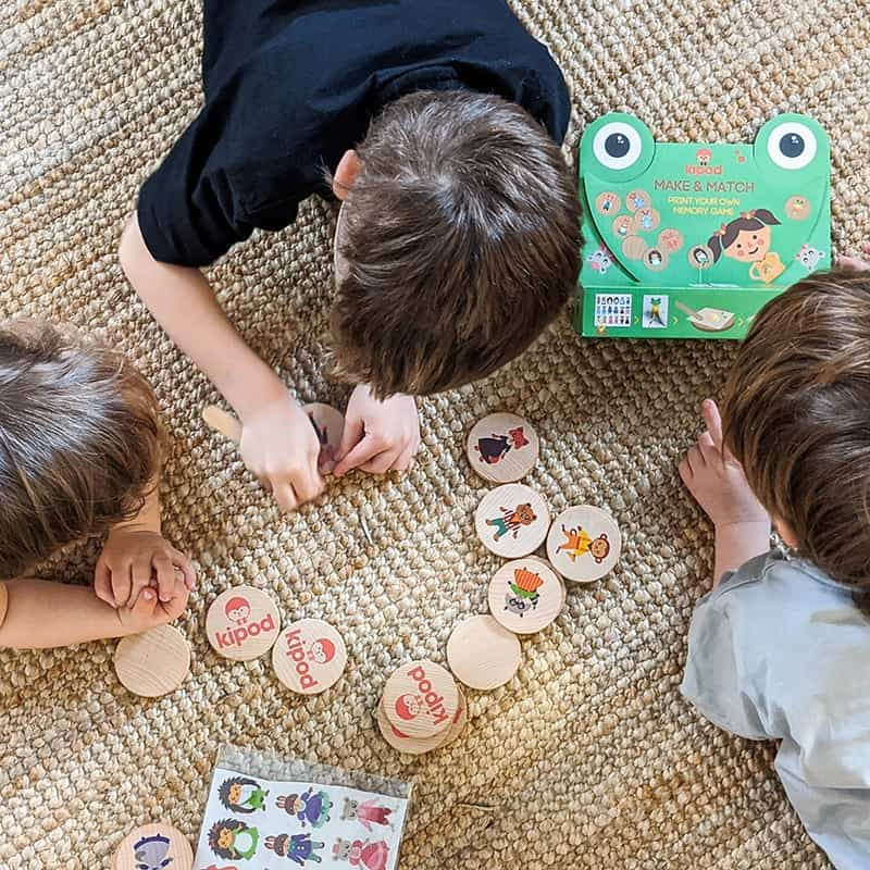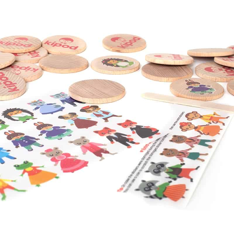 Joc creativ de memorie Kipod copiii creeaza propriul joc de memorie folosind autocolante , žrub-on, si monede din lemn, apoi se pot juca in familie sau cu prietenii. ,œ continut: , 18 monede din lemn , 18 autocolante , žrub-on, + 6 suplimentare , 2 betisoare din lemn materiale: lemn natural, hartie autocolanta, vopsea pe baza de apa.