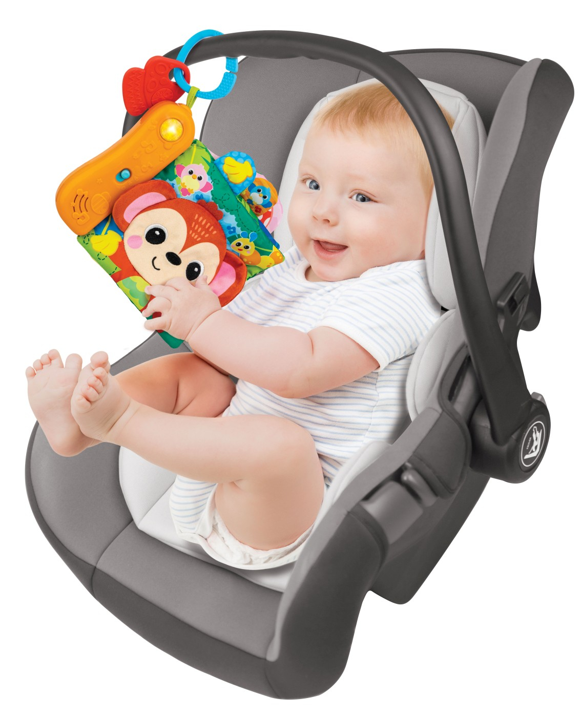Cartea senzoriala moale si distractiva este o jucarie captivanta si educativa pentru copiii cu varsta incepand cu 3 luni si peste. Conceputa pentru a stimula simturile si pentru a oferi o experienta interactiva placuta, aceasta carte este ideala pentru micutii care descopera lumea inconjuratoare. Carte are o textura moale si placuta, perfecta pentru manutele delicate ale bebelusilor. Cartea senzoriala include si elemente interactive care capteaza atentia copiilor. Butonul de iluminare si sunete ofera efecte sonore si melodii vesele, ceea ce adauga o dimensiune de divertisment si stimulare auditiva. Materialul de dentitie texturat este proiectat sa ajute la calmarea gingiilor sensibile ale bebelusilor in timpul perioadelor de dentitie. Textura variata si sigura asigura o experienta placuta si sigura pentru cei mici, oferind in acelasi timp o solutie de confort in momentele de disconfort. Cartea se poate fixa cu usurinta la carucior, patut sau scaun auto. Designul colorat si atragator al cartii, impreuna cu sunetele si luminile, stimuleaza interesul vizual al copiilor si ii motiveaza sa exploreze in continuu. Imaginile vesele si prietenoase ii vor captiva pe cei mici si ii vor invita sa descopere fiecare pagina cu bucurie si curiozitate.