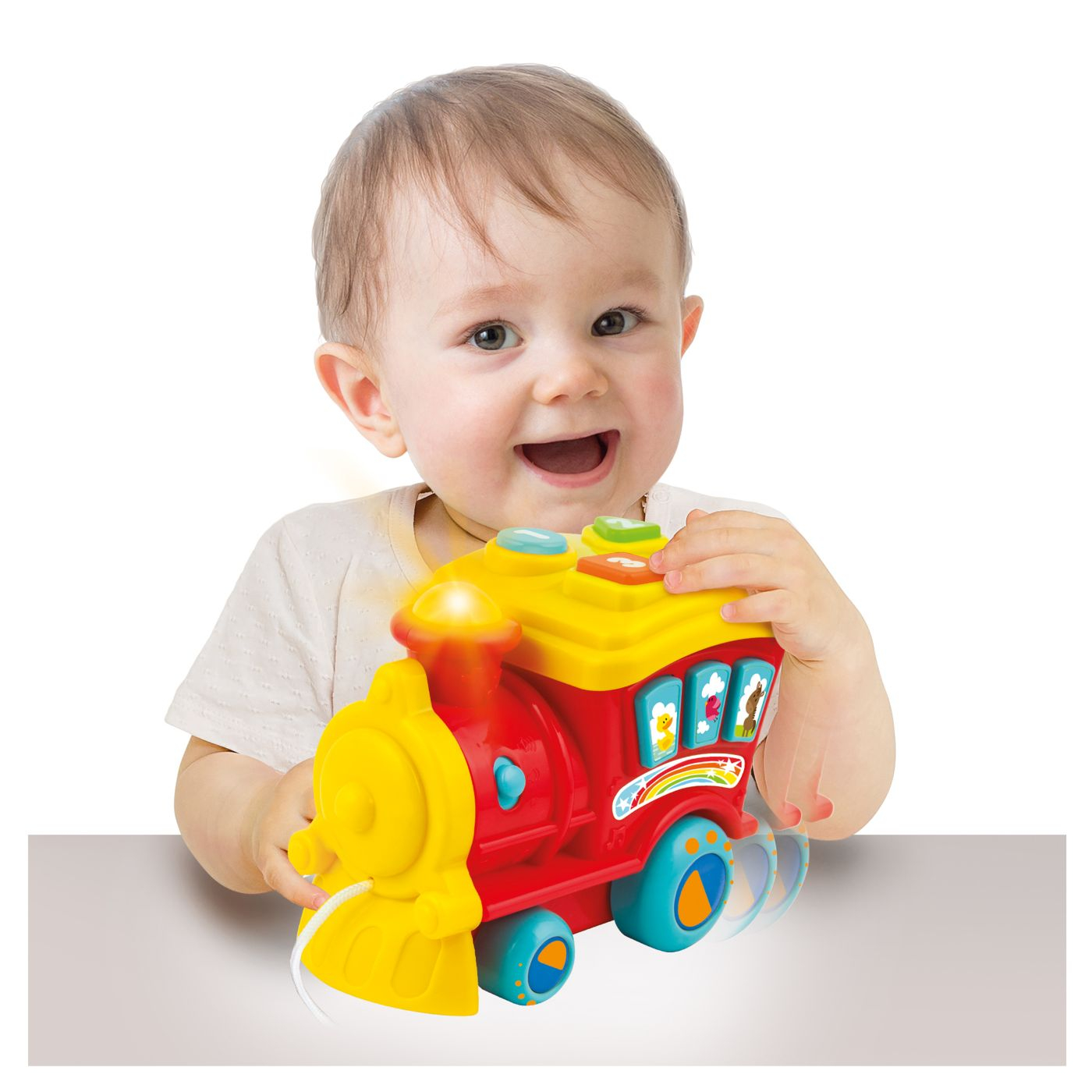 Trenuletul cu sunete de la Winfun ofera ore intregi de distractie si invatare. Aceasta jucarie poate fi trasa de copii, activand lumini intermitente si efecte sonore amuzante. Prin apasarea butoanelor numerotate de la 1 la 4 si a celor cu animale, copilul va invata sa identifice cifre si sa recunoasca sunetele specifice animalelor. Melodiile vesele si efectele sonore stimuleaza auzul si curiozitatea, iar designul viu colorat atrage atentia micutului tau. Ideal pentru dezvoltarea abilitatilor motorii si cognitive, trenuletul devine un partener perfect de joaca pentru cei mici, oferind ore intregi de explorare si veselie.