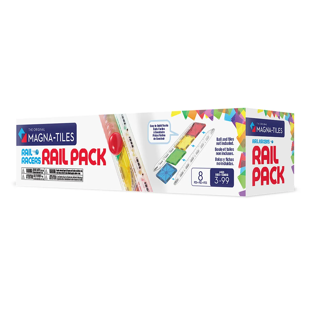 Rail Racers Rail Pack este conceput ca un set de extensie pentru sistemul Rail Racers, permițând copiilor să construiască piste mai lungi și structuri mai complexe. Șinele magnetice se conectează ușor la alte piese MAGNA-TILES, oferind stabilitate și flexibilitate în construcție.